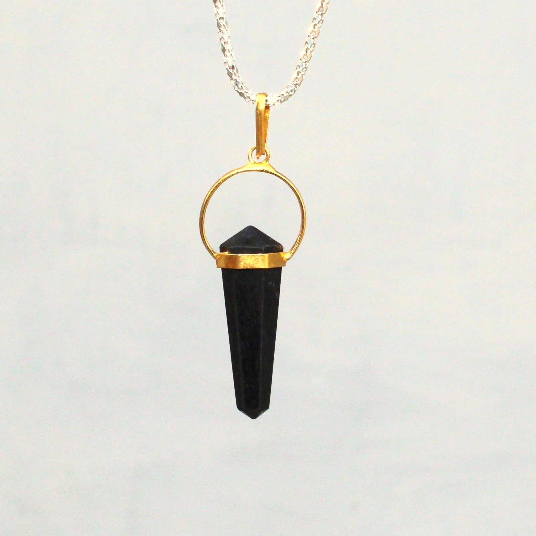 Natural Black Tourmaline Point Pendant