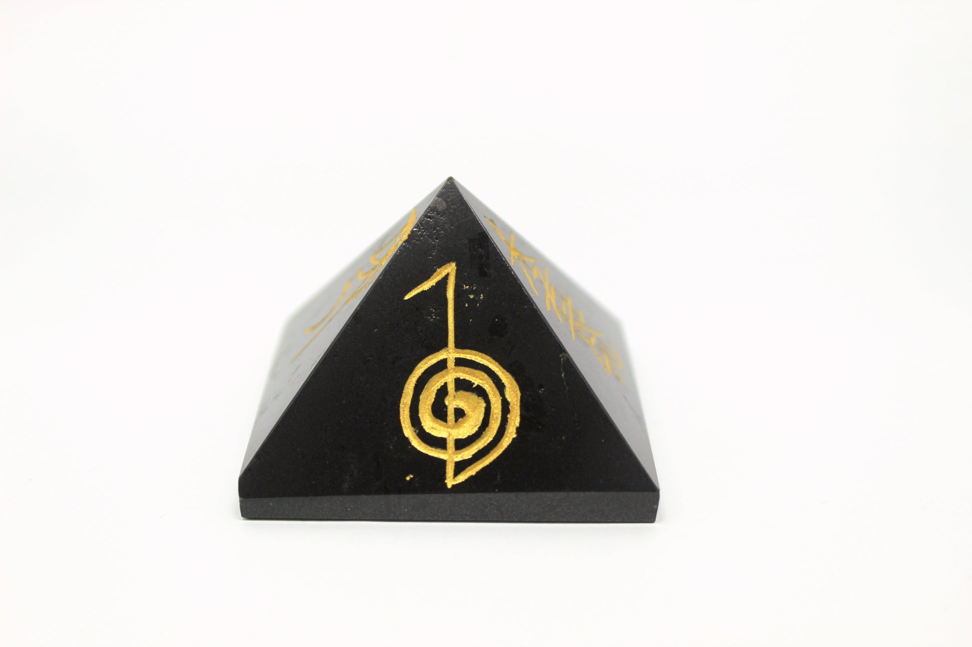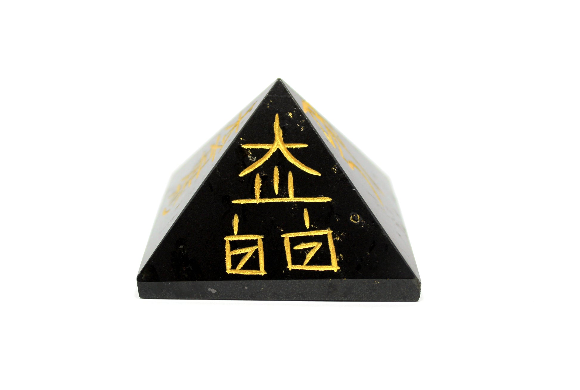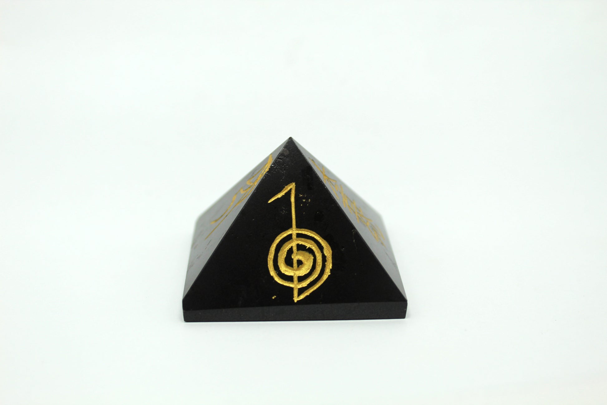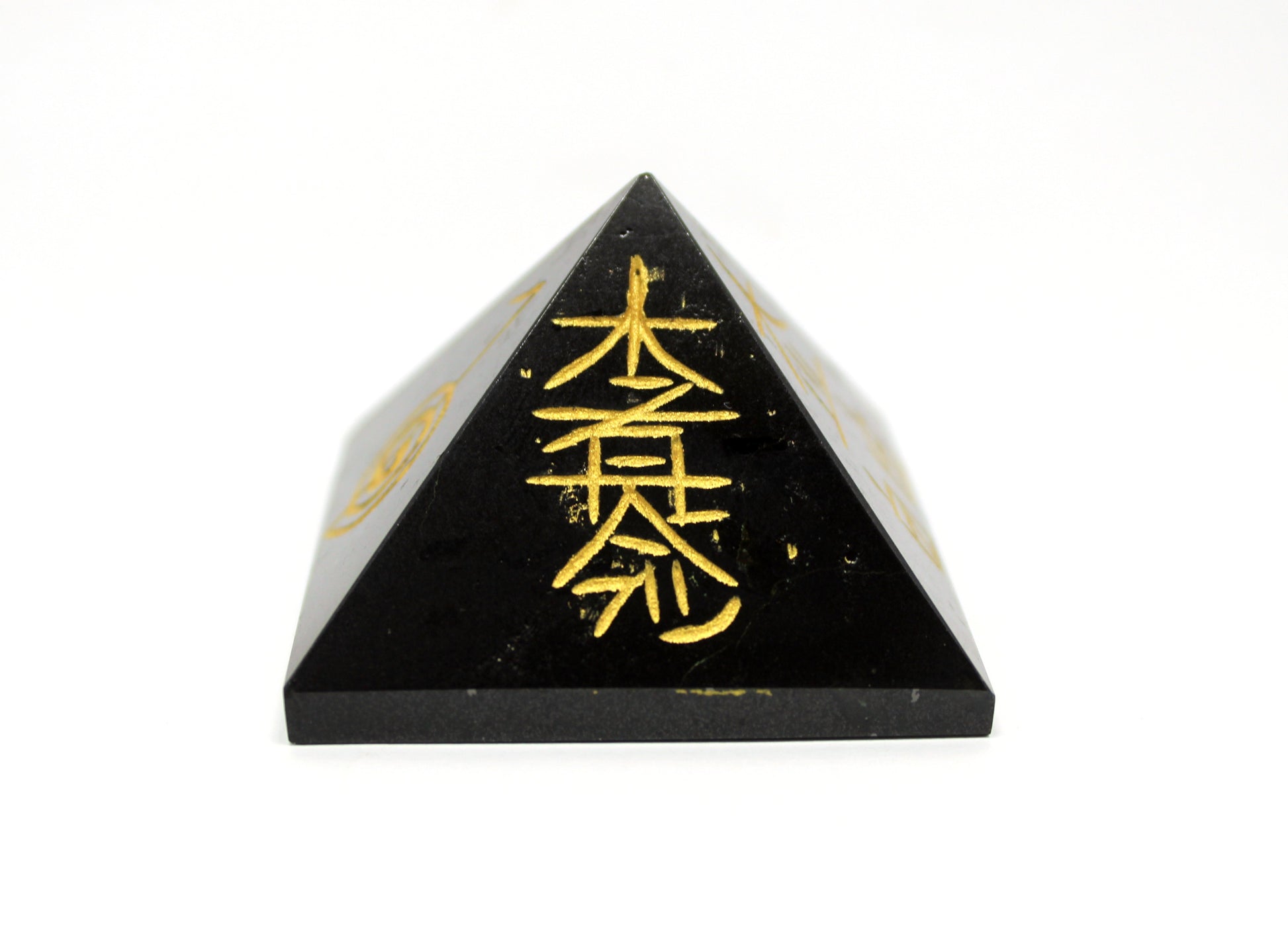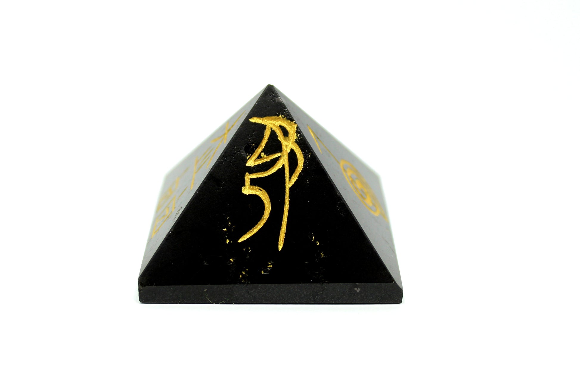Natural Black Tourmaline Reiki Symbol Engraved Pyramid