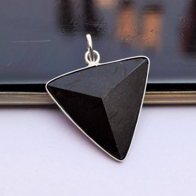 Natural Black Tourmaline Triangle Pendant