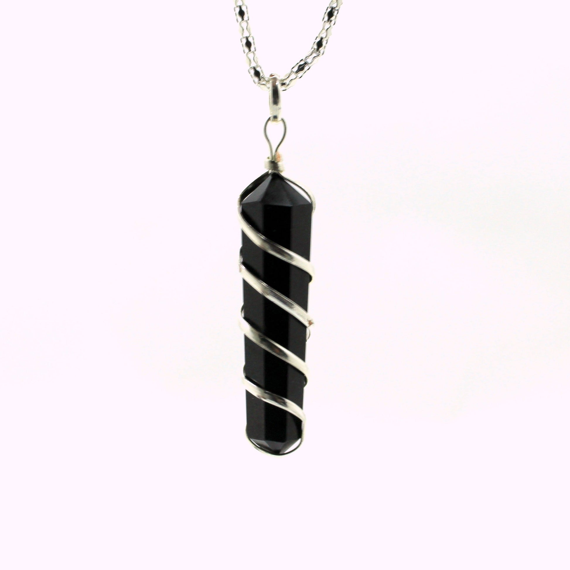Natural Black Tourmaline Wire Wrapped Pendant
