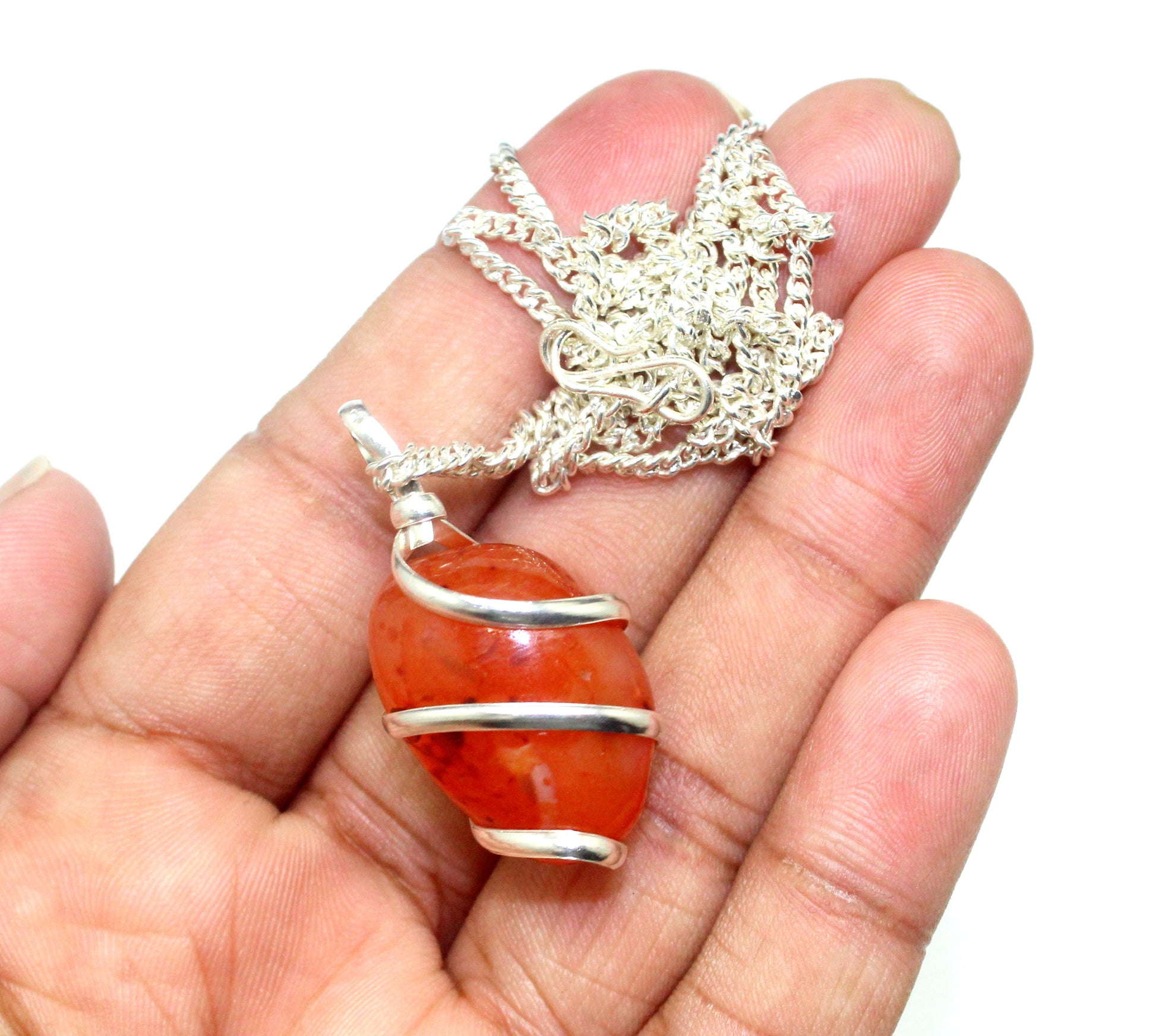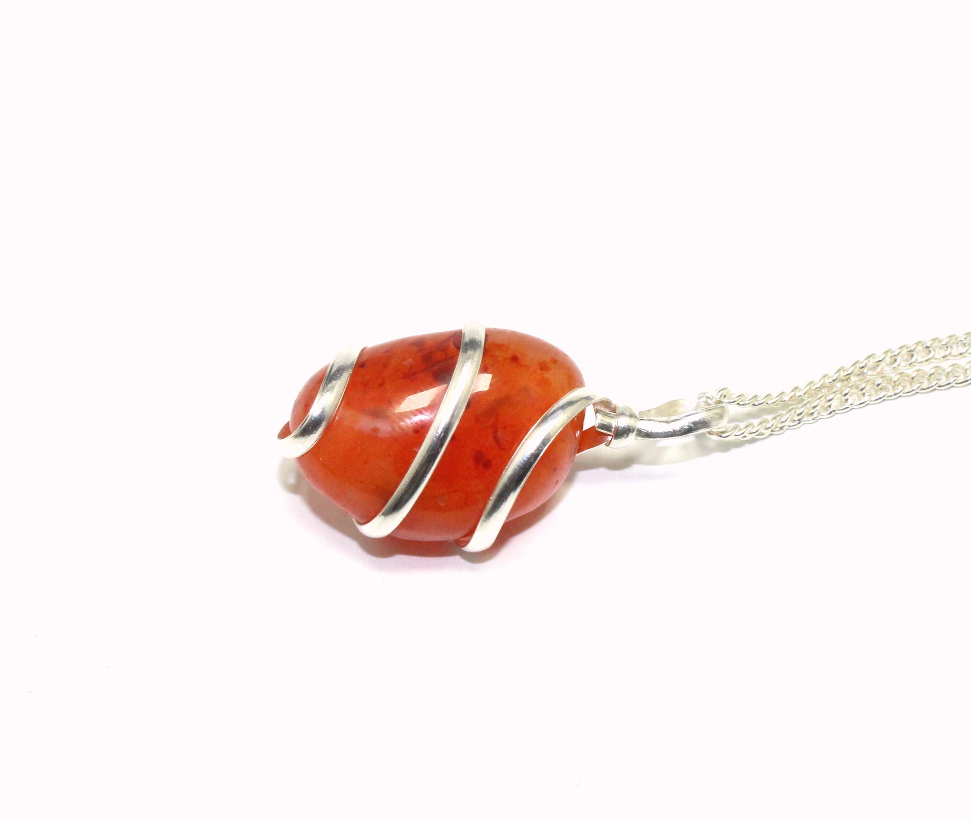 Natural Carnelian Tumble Wire Wrapped Pendant