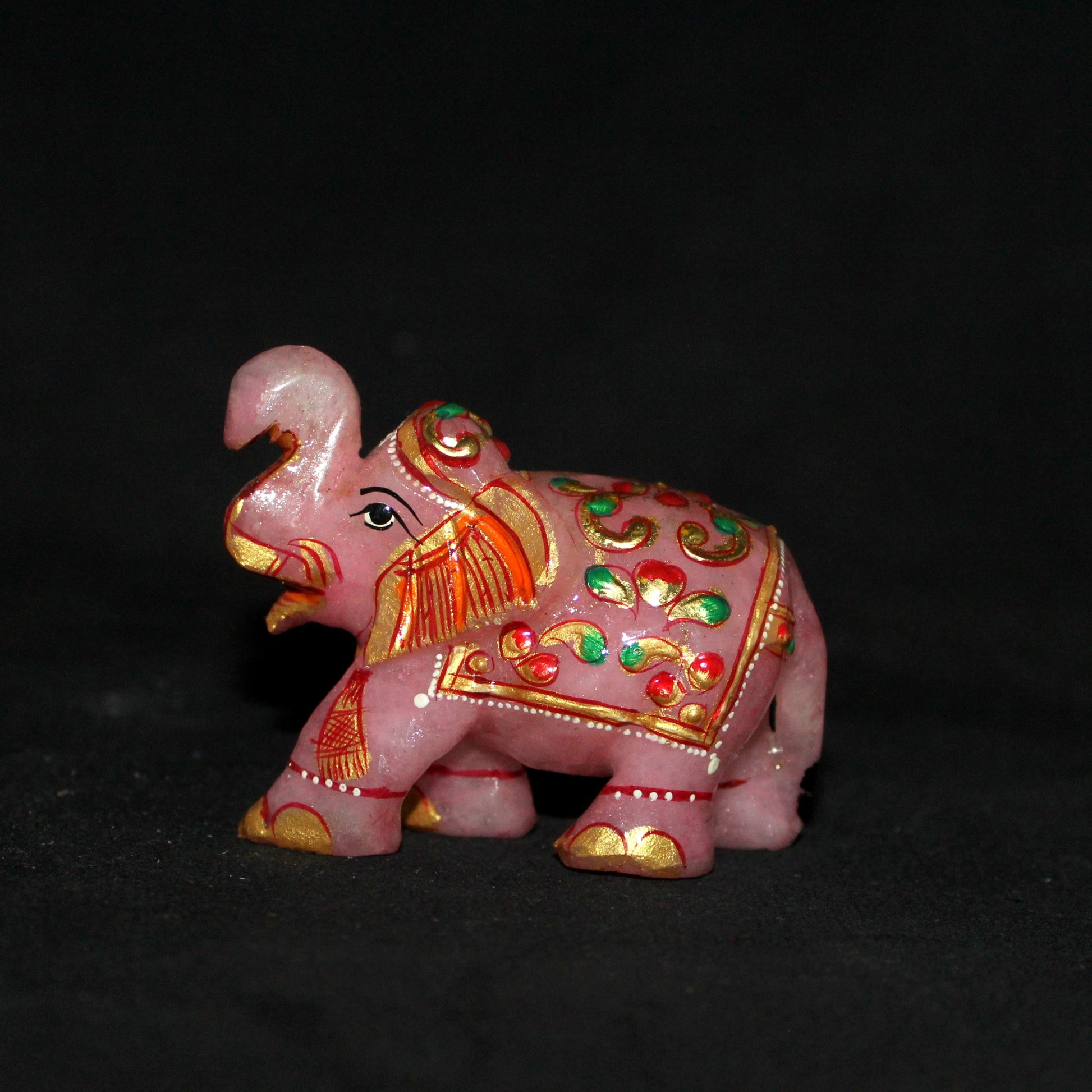 Natural Rose Quartz Hand Painted Elephant